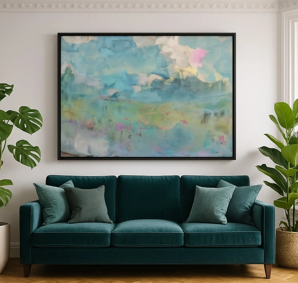 *Please note that AI has been used solely to provide an example of how the artwork may appear in an interior environment.For any enquires or additional imagery and video of this painting please contact hello@alexanderrhys.com