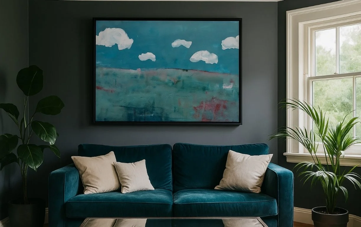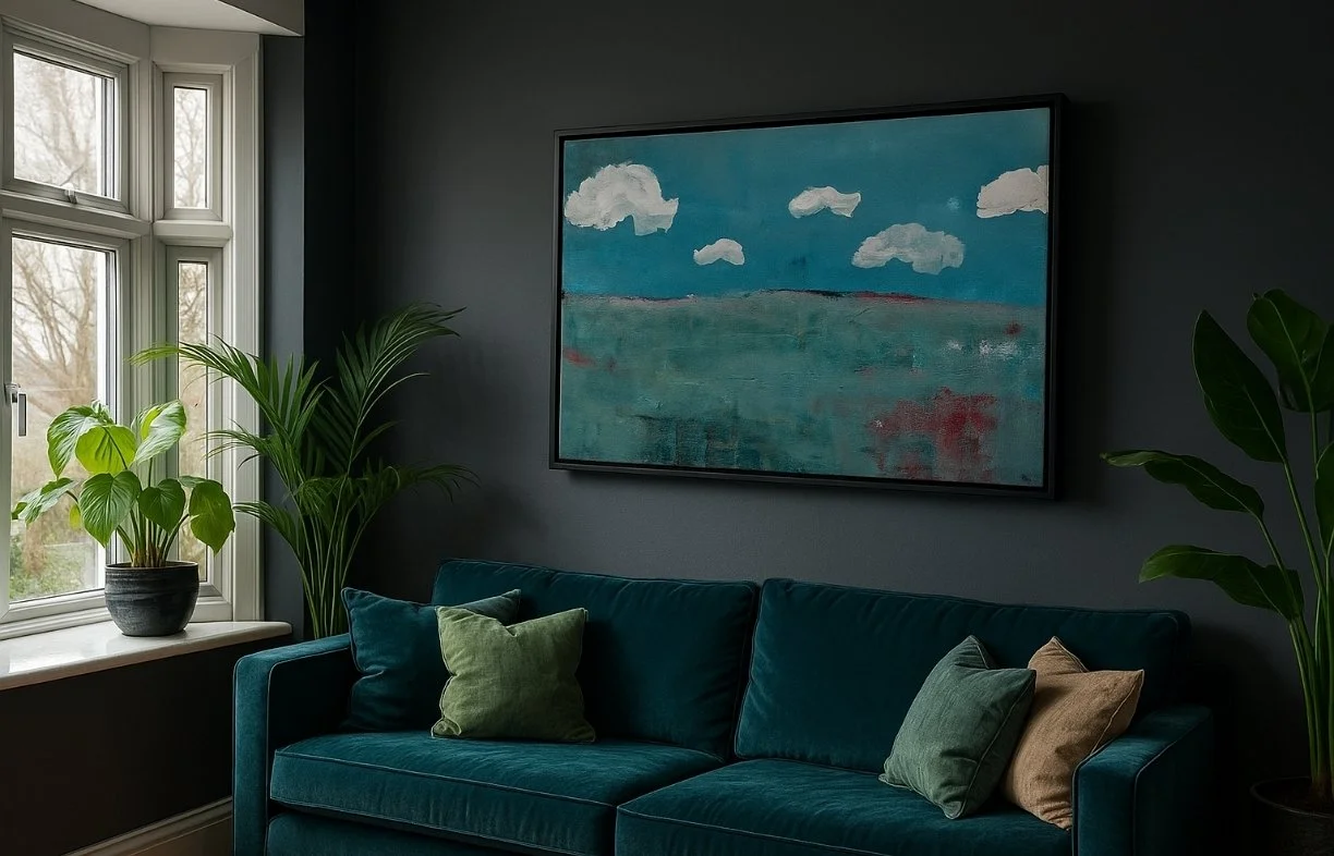 *Please note that AI has been used solely to provide an example of how the artwork may appear in an interior environment.For any enquires or additional imagery and video of this painting please contact hello@alexanderrhys.com