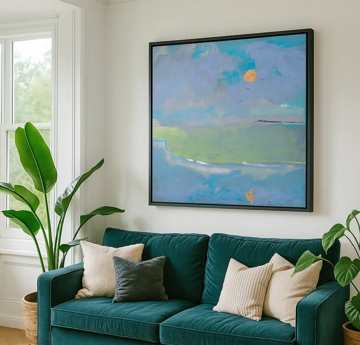 *Please note that AI has been used solely to provide an example of how the artwork may appear in an interior environment.For any enquires or additional imagery and video of this painting please contact hello@alexanderrhys.com