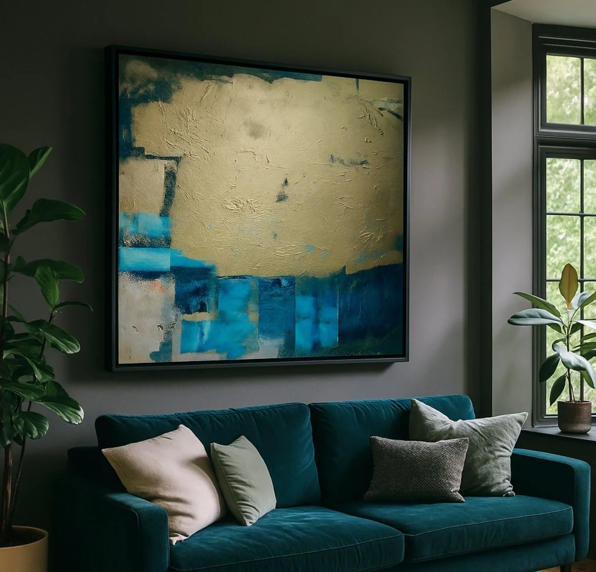 *Please note that AI has been used solely to provide an example of how the artwork may appear in an interior environment.For any enquires or additional imagery and video of this painting please contact hello@alexanderrhys.com