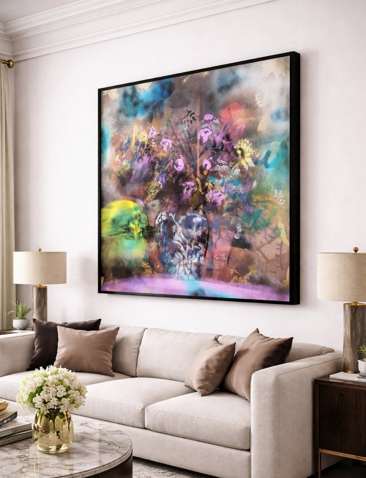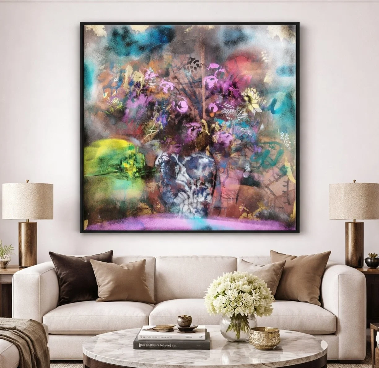 Please note that all photography shown is genuine. AI has been used solely to create example images illustrating how the artwork may appear within an interior setting.