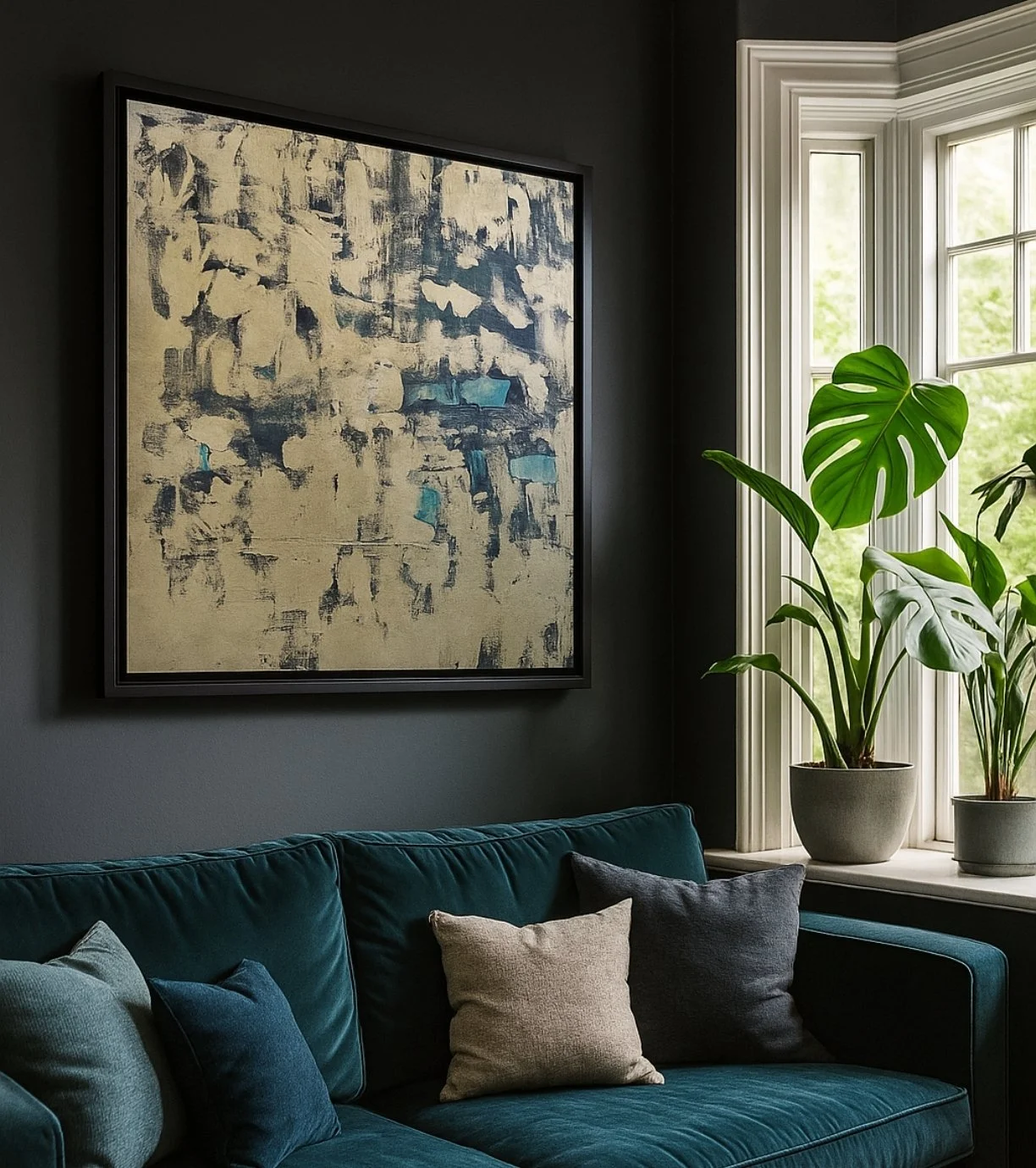 *Please note that AI has been used solely to provide an example of how the artwork may appear in an interior environment.For any enquires or additional imagery and video of this painting please contact hello@alexanderrhys.com