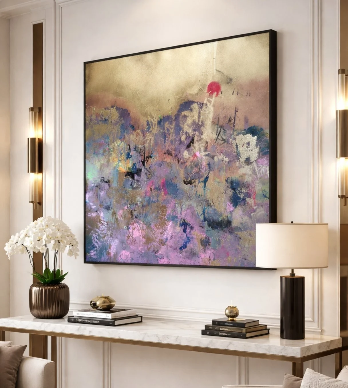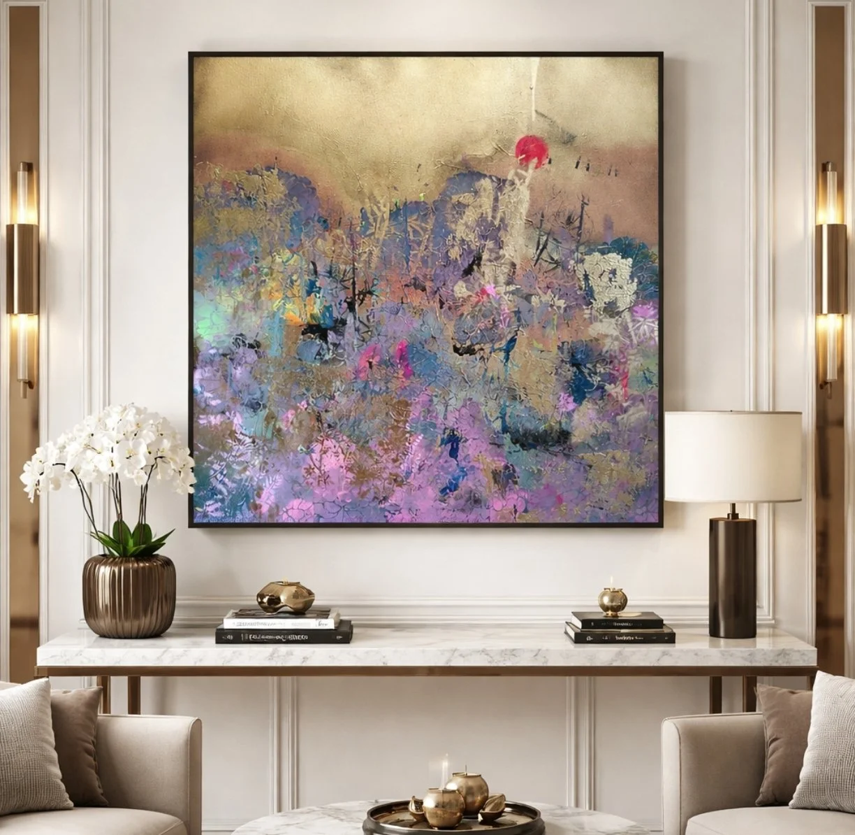 Please note that all photography shown is genuine. AI has been used solely to create example images illustrating how the artwork may appear within an interior setting.