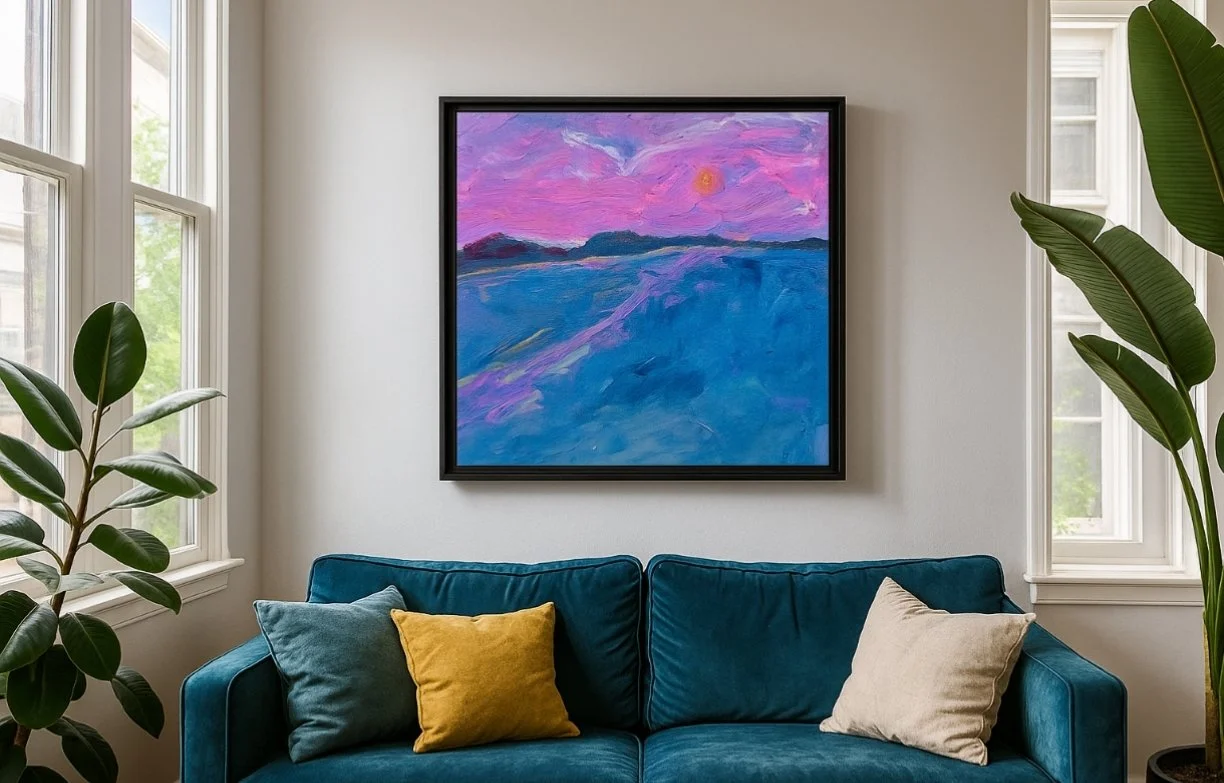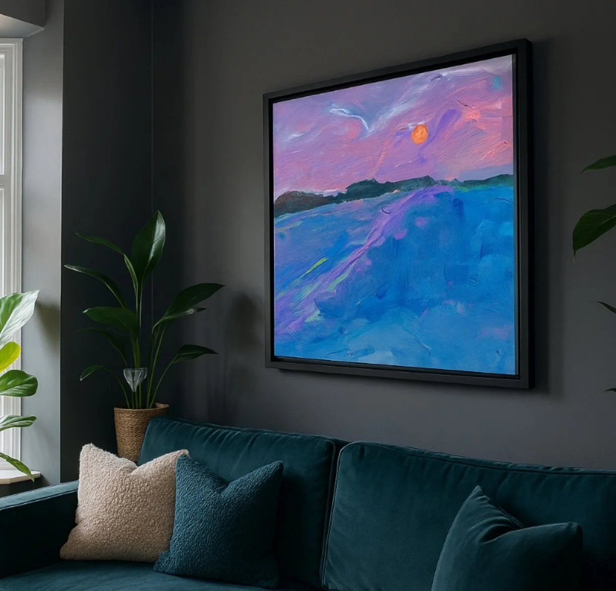 *Please note that AI has been used solely to provide an example of how the artwork may appear in an interior environment.For any enquires or additional imagery and video of this painting please contact hello@alexanderrhys.com