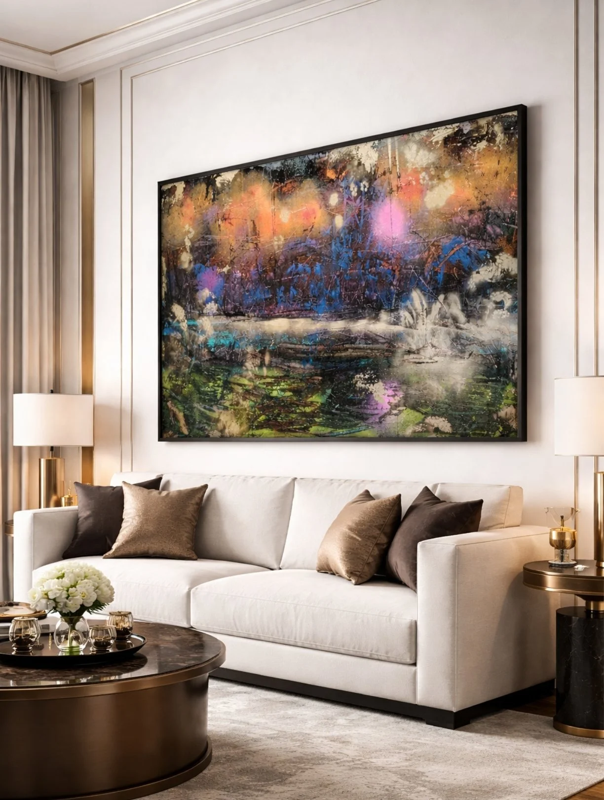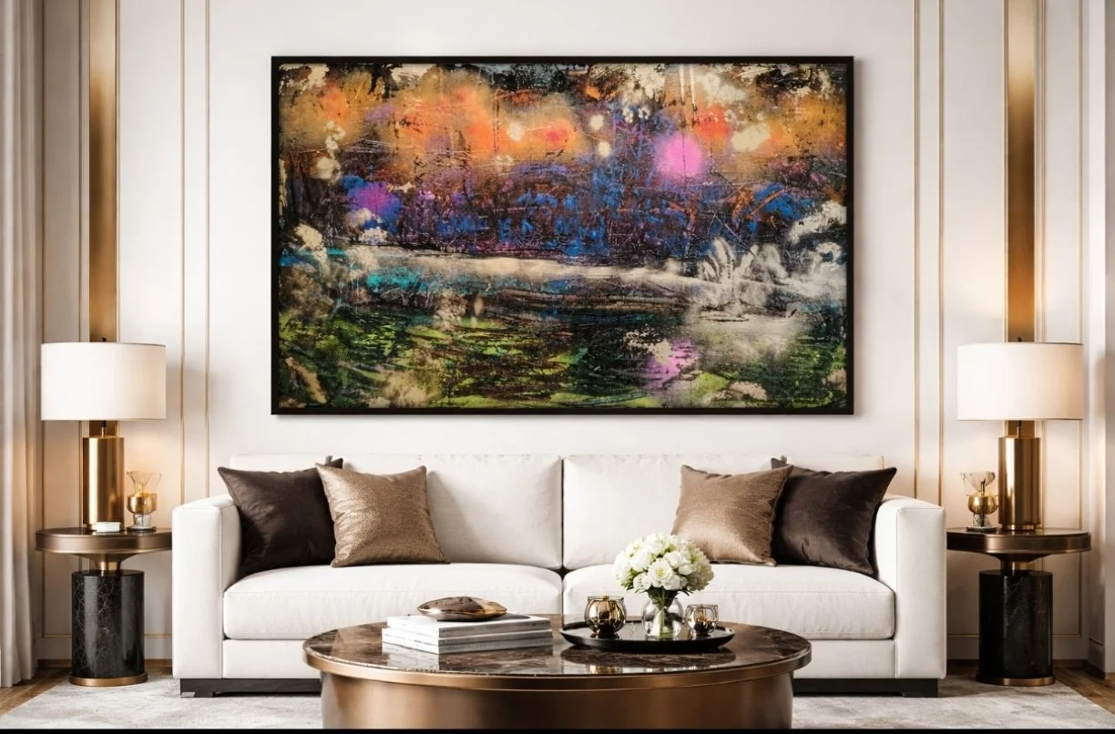 *Please note that AI has been used solely to provide an example of how the artwork may appear in an interior environment.For any enquires or additional imagery and video of this painting please contact hello@alexanderrhys.com