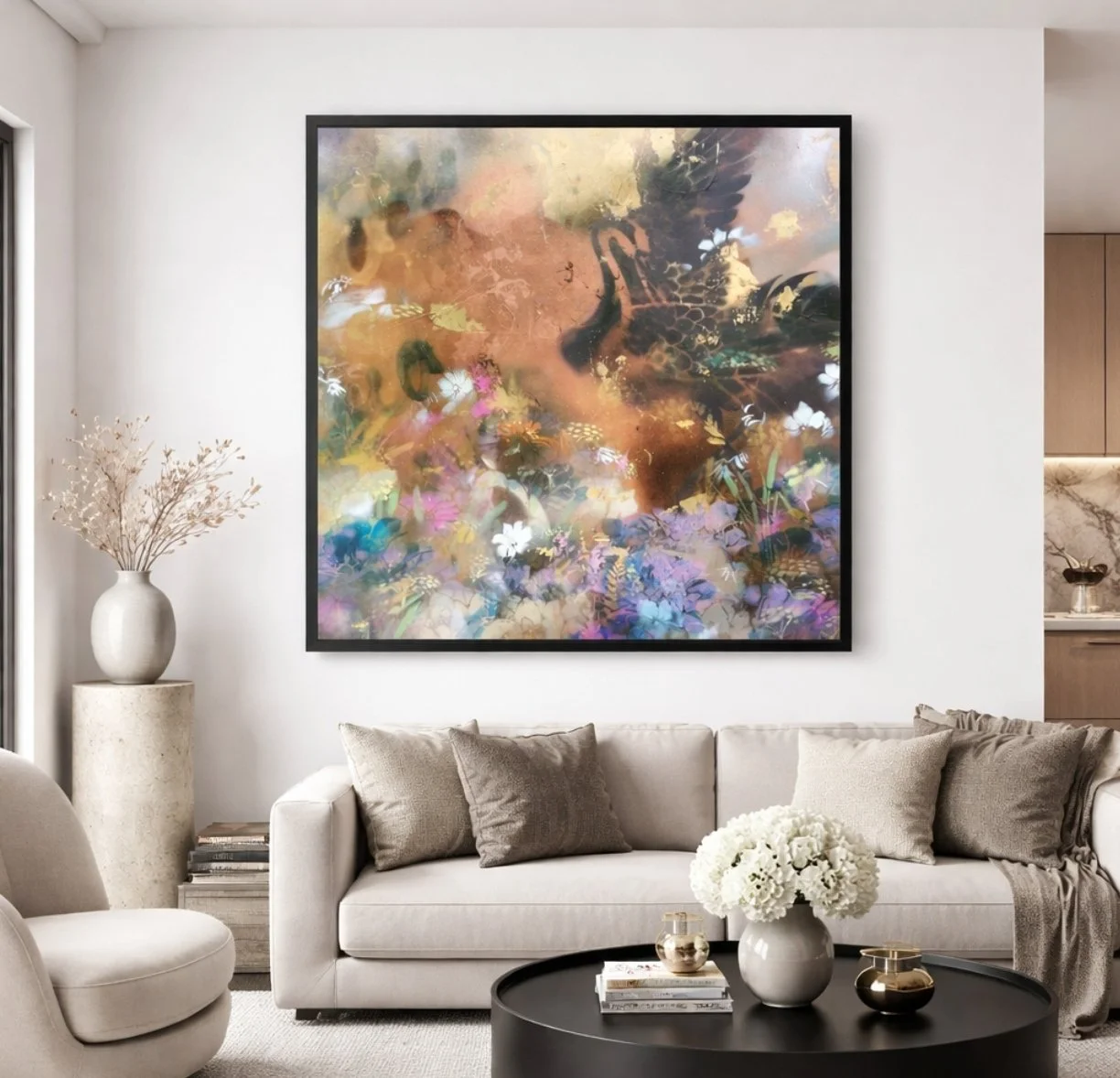 Please note that all photography shown is genuine. AI has been used solely to create example images illustrating how the artwork may appear within an interior setting.