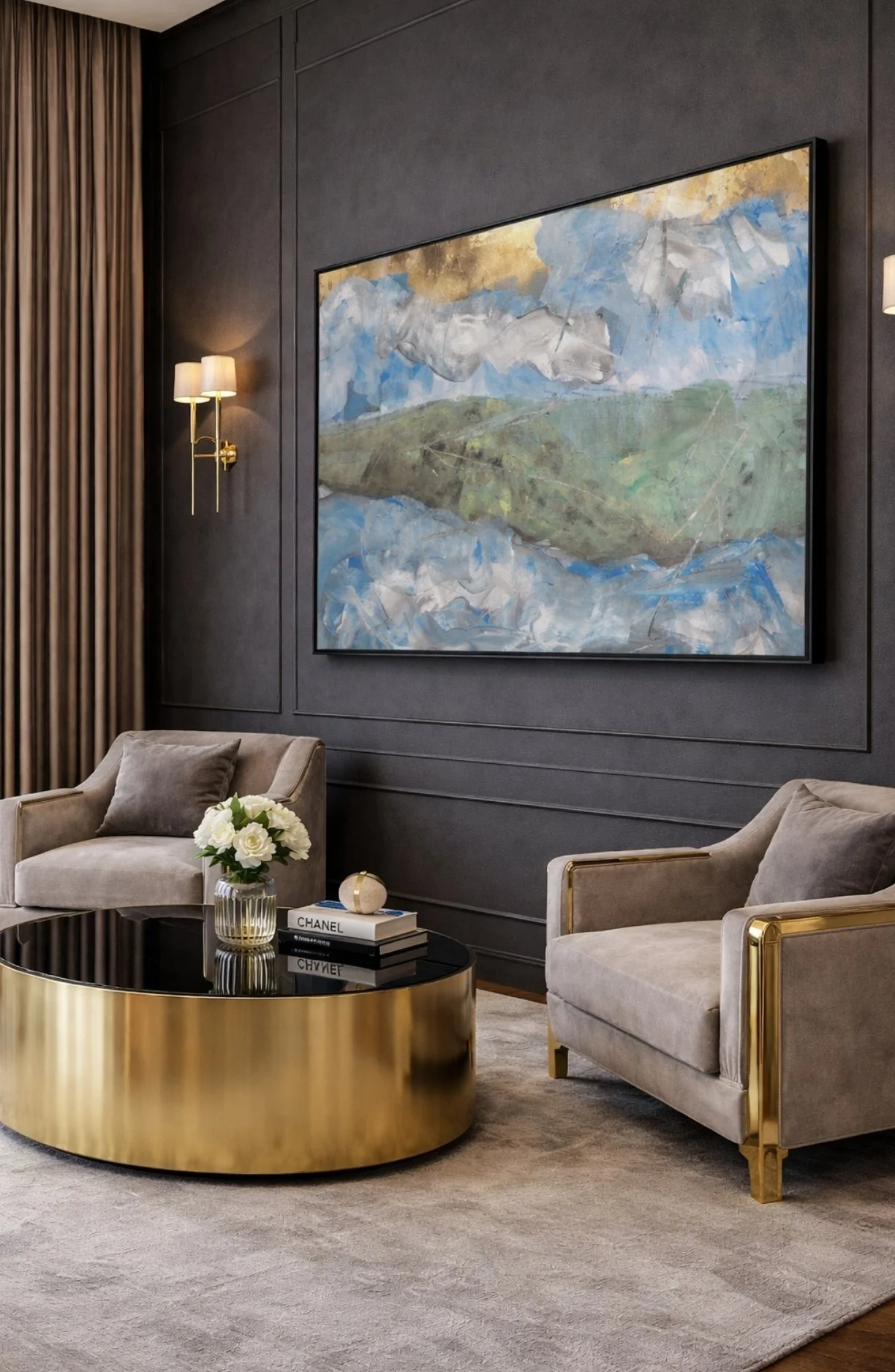 Please note that all photography shown is genuine. AI has been used solely to create example images illustrating how the artwork may appear within an interior setting.