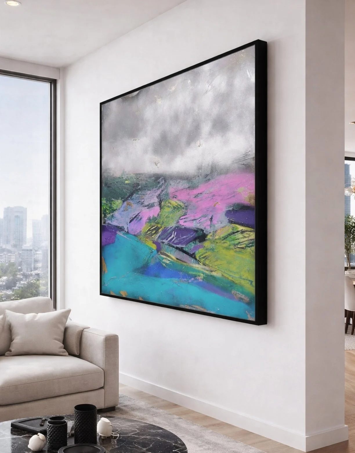 Please note that all photography shown is genuine. AI has been used solely to create example images illustrating how the artwork may appear within an interior setting.