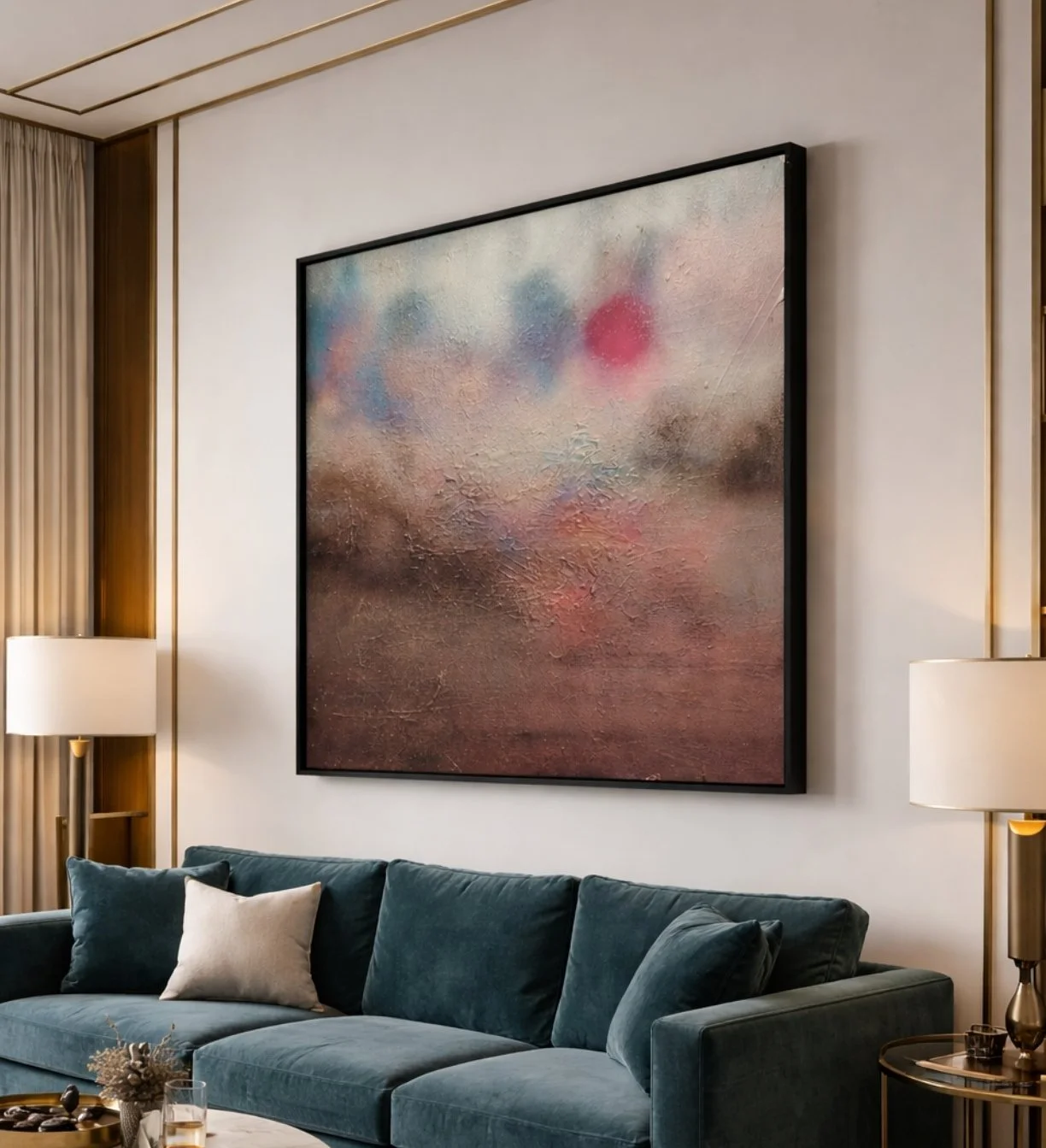 Please note that all photography shown is genuine. AI has been used solely to create example images illustrating how the artwork may appear within an interior setting.
