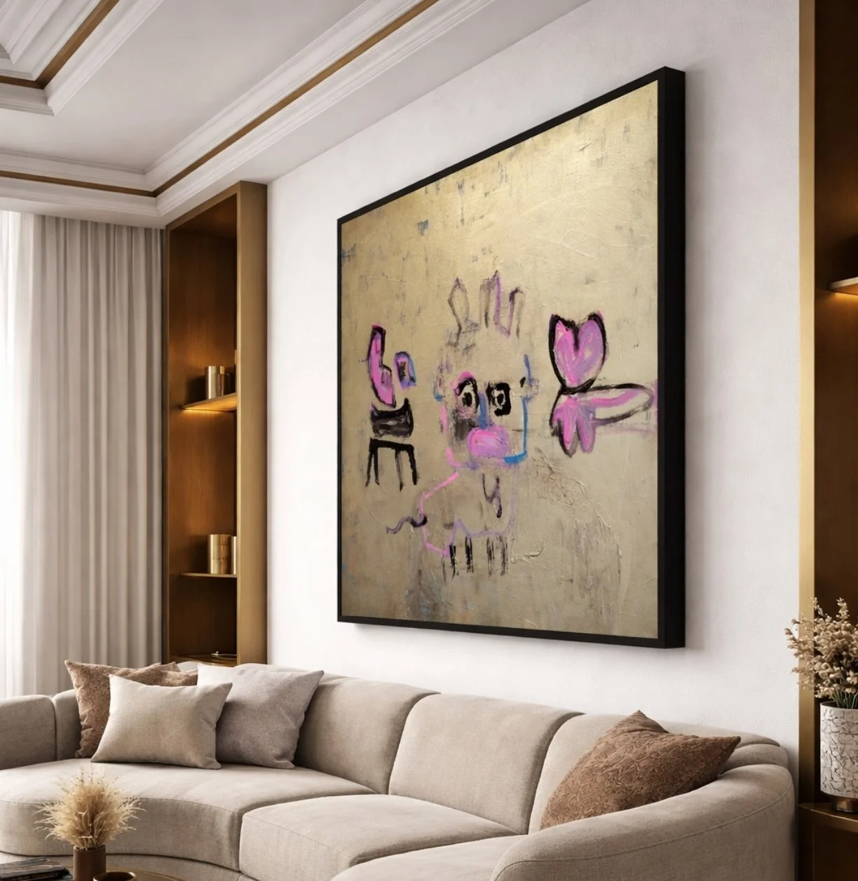 *Please note that AI has been used solely to provide an example of how the artwork may appear in an interior environment.For any enquires or additional imagery and video of this painting please contact hello@alexanderrhys.com