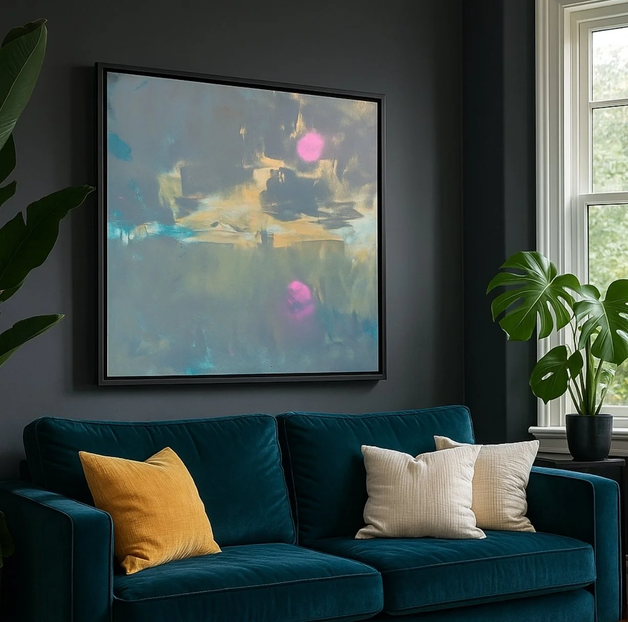 *Please note that AI has been used solely to provide an example of how the artwork may appear in an interior environment.For any enquires or additional imagery and video of this painting please contact hello@alexanderrhys.com