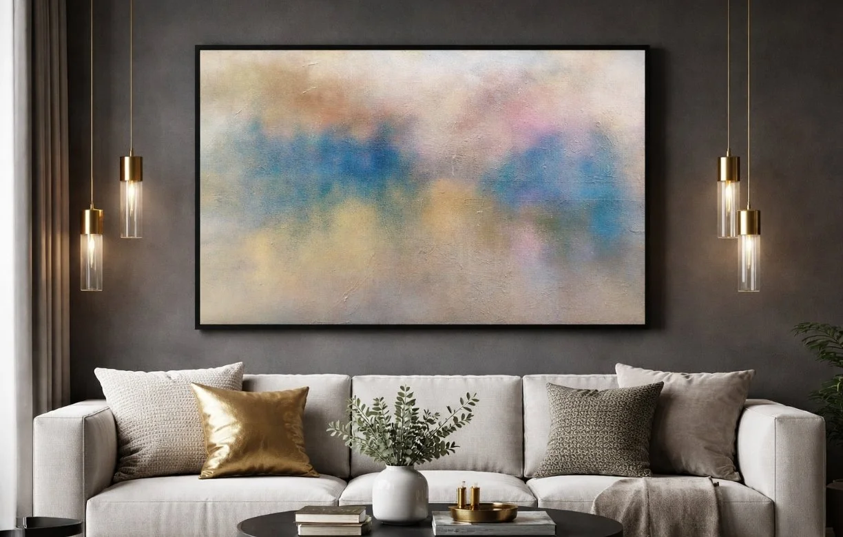 *Please note that AI has been used solely to provide an example of how the artwork may appear in an interior environment.For any enquires or additional imagery and video of this painting please contact hello@alexanderrhys.com
