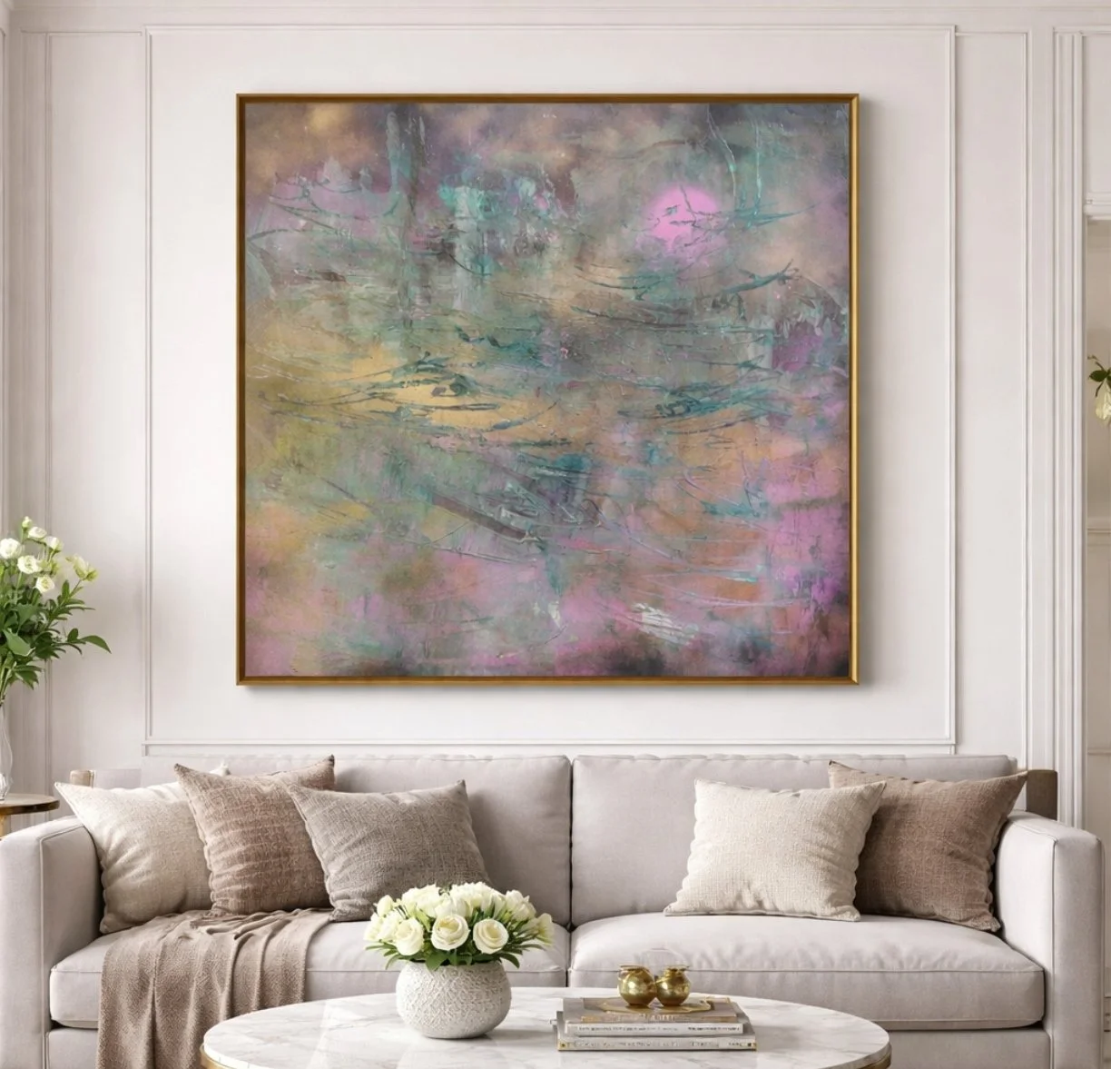 Please note that all photography shown is genuine. AI has been used solely to create example images illustrating how the artwork may appear within an interior setting.